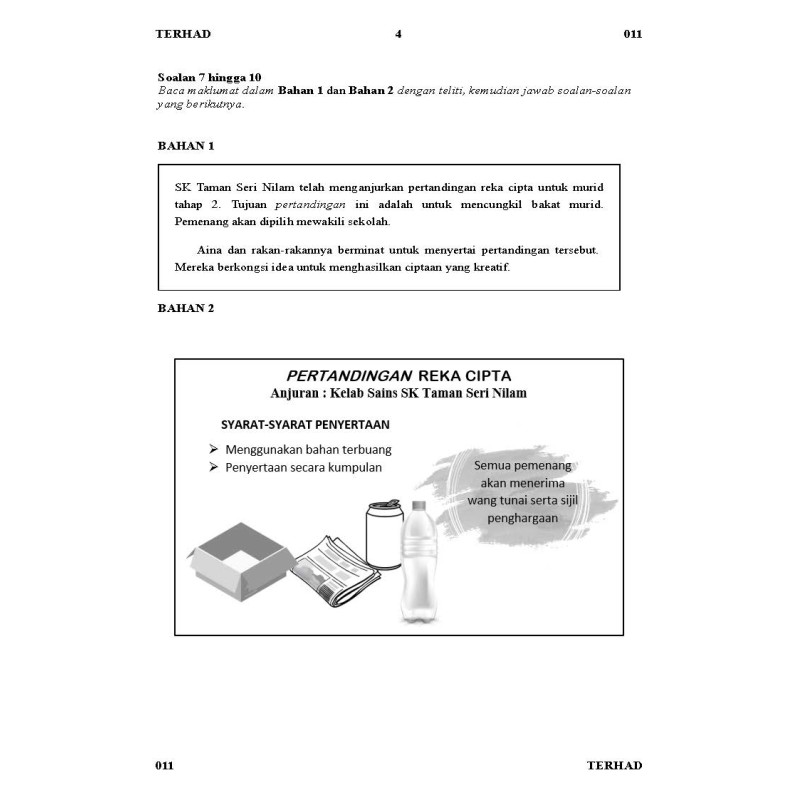 - Petikan pemahaman dengan contoh jawapan yang tepat